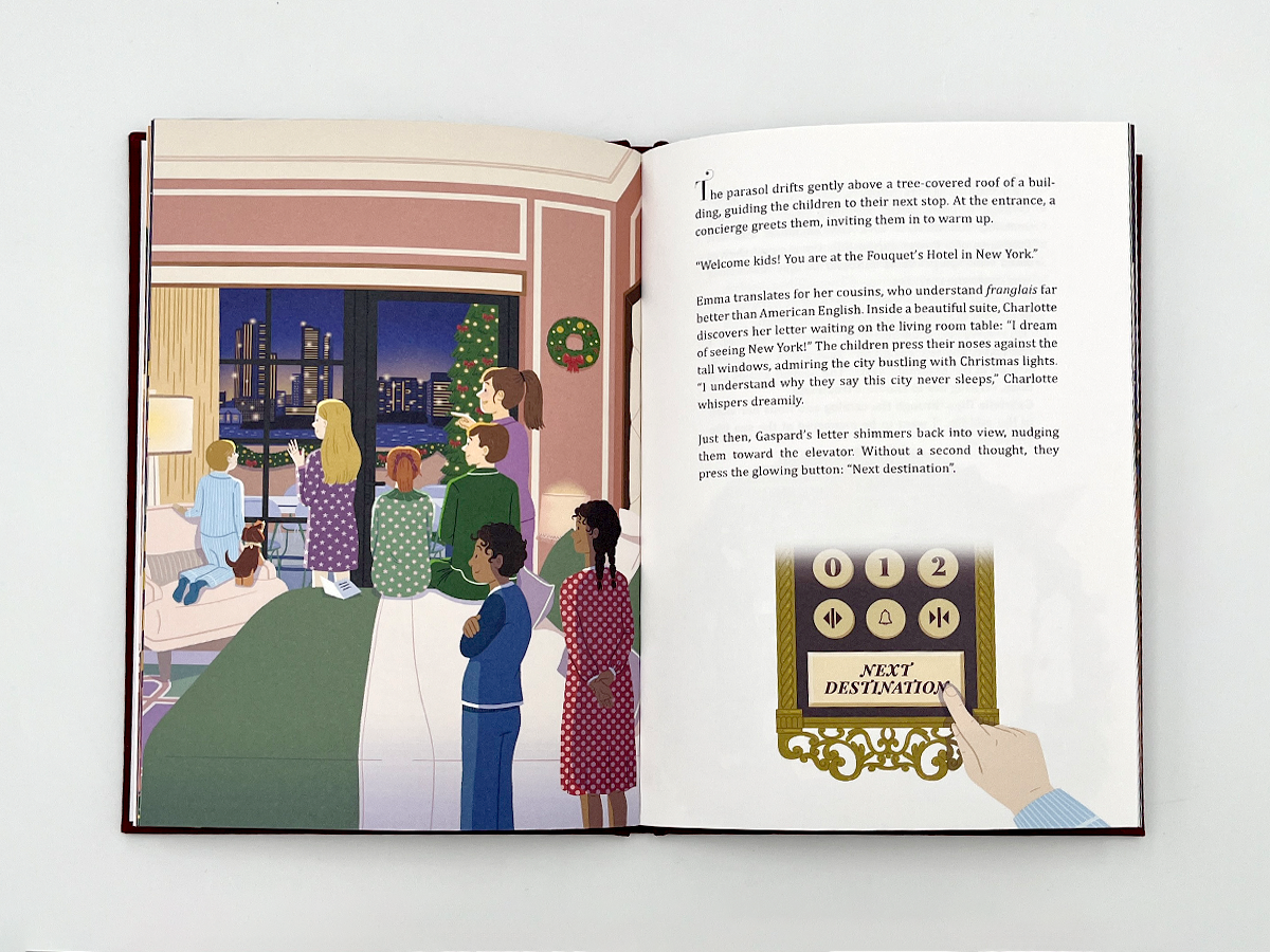 Dans une chambre de la Maison Barrière Vendôme, un jeu de “vœux express” déclenche l’inattendu : la lettre de Gaspard s’envole, comme animée d’une volonté propre. Commence alors une nuit où rêve et réalité se confondent, guidant les enfants de lieu en lieu — jusqu’aux décors bien réels des Maisons du Groupe, transformés en scènes d’un conte vivant.